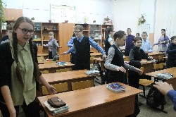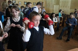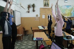 В актом зале члены "Гражданского клуба" на больших переменах провели "переменки здоровья" для обучающихся начальной школы. Изюминкой акции стала производственная гимнастика для педагогов, после проведения которой большинство педагогов предложили сделать такую зарядку традицией.